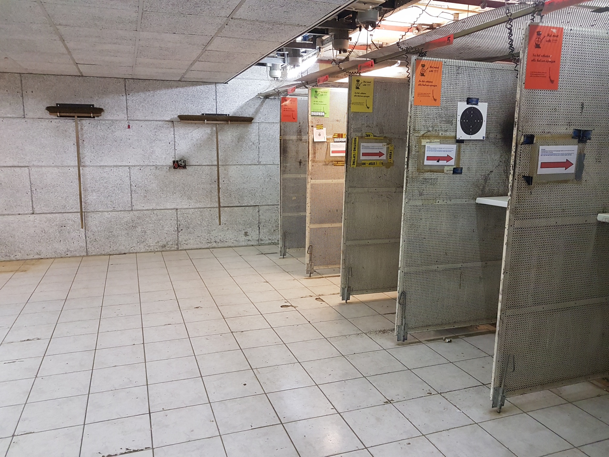 De lange baan heeft 6 schietstanden en ook hier beschikken we over een baantransport systeem, deze kunnen ingesteld worden op afstanden van 25, 50 en 100 meter. Staand, zittend of liggend schieten is hier geen probleem.